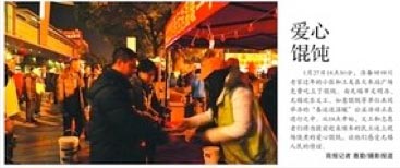 1月27日18點50分,準備回四川老家過年的小張和工友在火車站廣場免費吃上了餛飩。由無錫市文明辦、無錫歡樂義工、如意餛飩等單位共同舉辦的“春運送溫暖”公益活動正在進行之中。從18點開始,義工和志愿者們將為提前趕來候車的民工送上現場燒煮的如意餛飩,讓他們感受無錫人民的情誼。無錫人民的情誼。