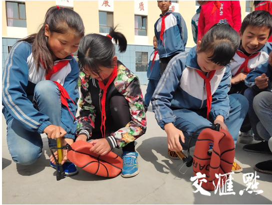 孩子們開心地給新籃球打氣。圖片由采訪對(duì)象提供
