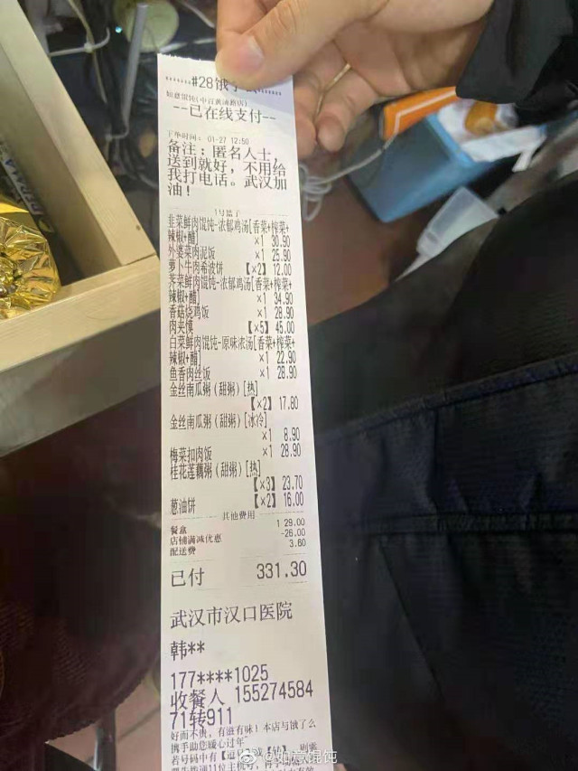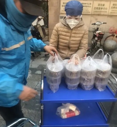 目前我們和美團/餓了么一起,已經接到武漢市九醫院、武漢大學中南醫院、湖北省腫瘤醫院、武漢市第一醫院等10多家醫院的用餐需求。