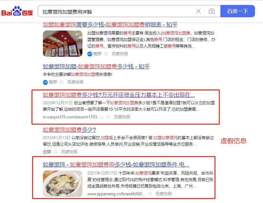 如意餛飩總部可以明確的告知大家,如意餛飩加盟費用詳解根本不存在!如果說你在網絡上進行搜索了,會有相關的結果:“如意餛飩加盟費用詳解 加盟店怎么樣 如意餛飩店加盟可靠嗎”、“如意餛飩加盟費多少錢?萬元開店資金壓力基本上不會出現在經營中”、“如意餛飩 - 如意餛飩加盟費用多少錢-如意餛飩加盟條件”等,可以看下邊的圖片: