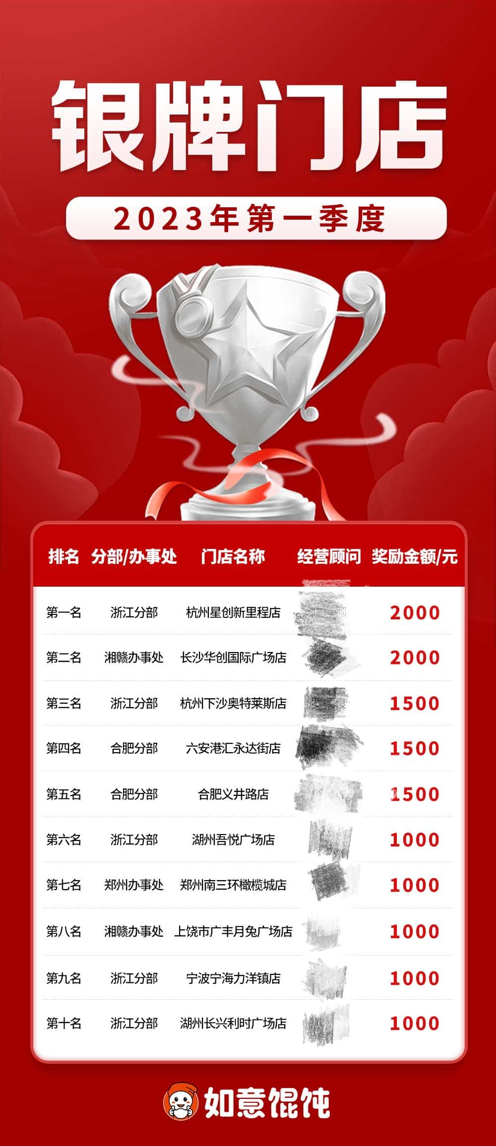 ●一季度獲獎門店