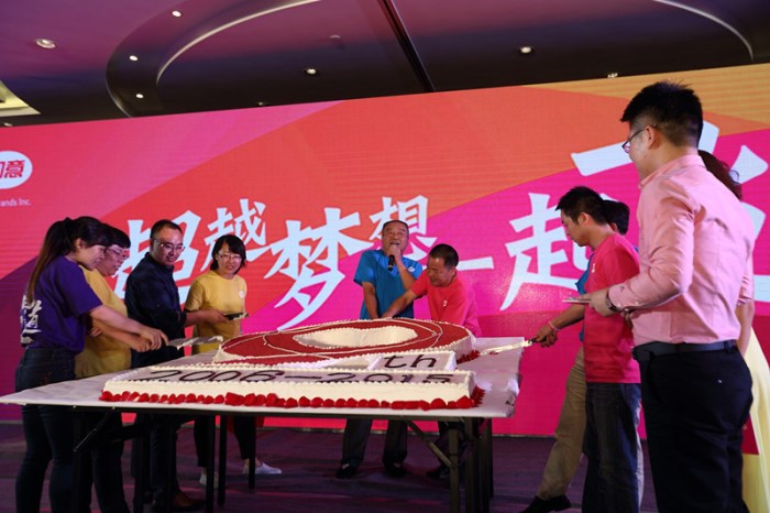 2015年9月29日中午13:30,“超越夢想一起飛”如意9周年慶典在蘇州太湖之濱隆重舉行。公司領導、員工、加盟商代表、供應商代表、承運商代表齊聚一堂,共同探討如意未來發展的戰略前景。在會議中,董事長闡述了公司的第三個五年規劃,明確了公司將在下一個五年著力打造核心競爭力的目標;總裁闡述了產品與模式的優化以及未來的目標,贏得了在場嘉賓的熱烈響應!同時,在場的所有如意家人一起聆聽了來自加盟商代表、供應商代表對如意的生日祝福,大家度過了一個愉快的下午。
