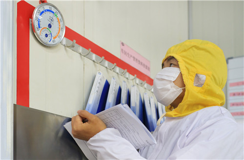 產品包裝完成后,質檢工作并沒有結束。發貨間的溫度同樣控制在15℃以下,質檢人員每兩小時進行檢測記錄。
