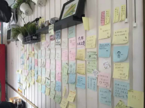 另外,我們店里常備便利貼,鼓勵顧客留言。初衷是因為我們煮餛飩需要時間,怕顧客等得著急。沒想到積累了很多老顧客,他們下次來的時候,經(jīng)常會去墻上找自己寫的貼紙貼在哪里,還有很多顧客很有才,手繪了很多內(nèi)容。這些都是來自顧客第一手的點評,有時候我自己看了也會覺得很感動。其實,很小的細(xì)節(jié),顧客就會覺得你不一樣,就會覺得這個店讓他們很溫馨。