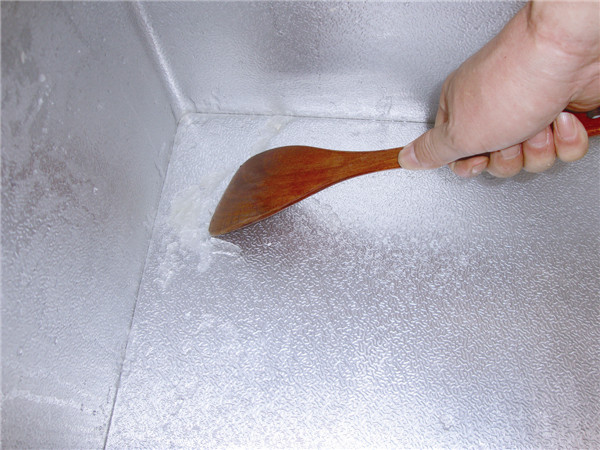 到達店內(nèi),老板正在用一個木板清理冰箱壁上覆蓋的冰霜,尤其是犄角旮旯的地方最要清理干凈,清理完成之后,用一塊干布把冰箱內(nèi)壁擦干凈。老板特別提示:清理冰箱的時候,千萬不要用鐵器哦,那樣會損傷冰箱,就不能正常保溫了哦。
