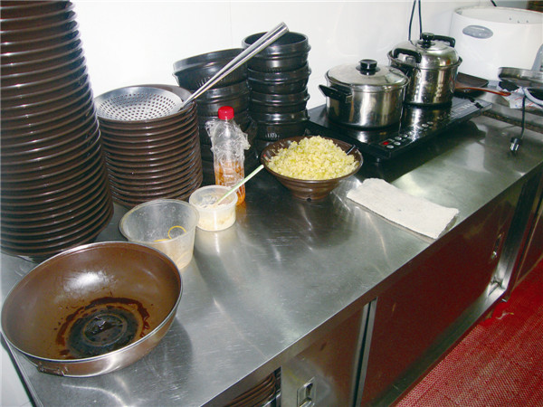 跟隨小編的步伐再來廚房看看吧,老板很自豪的告訴我們,他家的廚房客人都是可以進來參觀的,小編一看老板果然沒有夸張,所有的餐具碼的整整齊齊,操作臺一塵不染,沒有任何雜物,就連水池里面也是擦的锃光瓦亮。